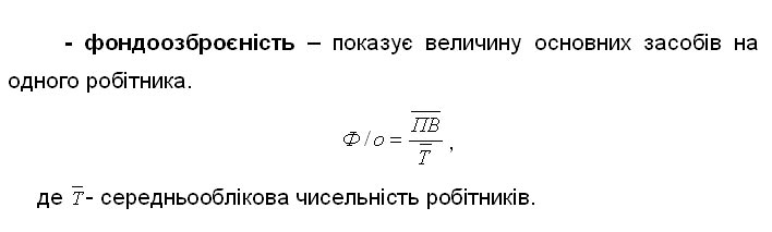 - фондоозброєність – показує величину основних засобів на одного робітника.